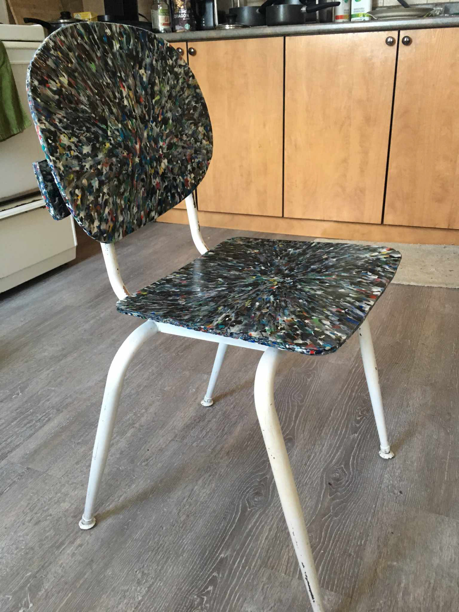 The backrest and seat are made from shredding HDPE. The bits are then placed on the heated sheet press to mold a flat sheet of plastic. It takes about 5 mins for the sheet to cool down therefore we use this time to place the sheet on the mold press, taking the shape of the backrest or the seat.